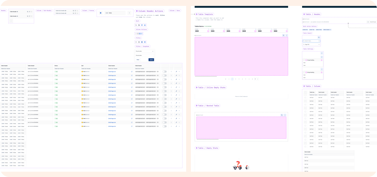 In Figma, I created a flexible, scalable table pattern with the following features: