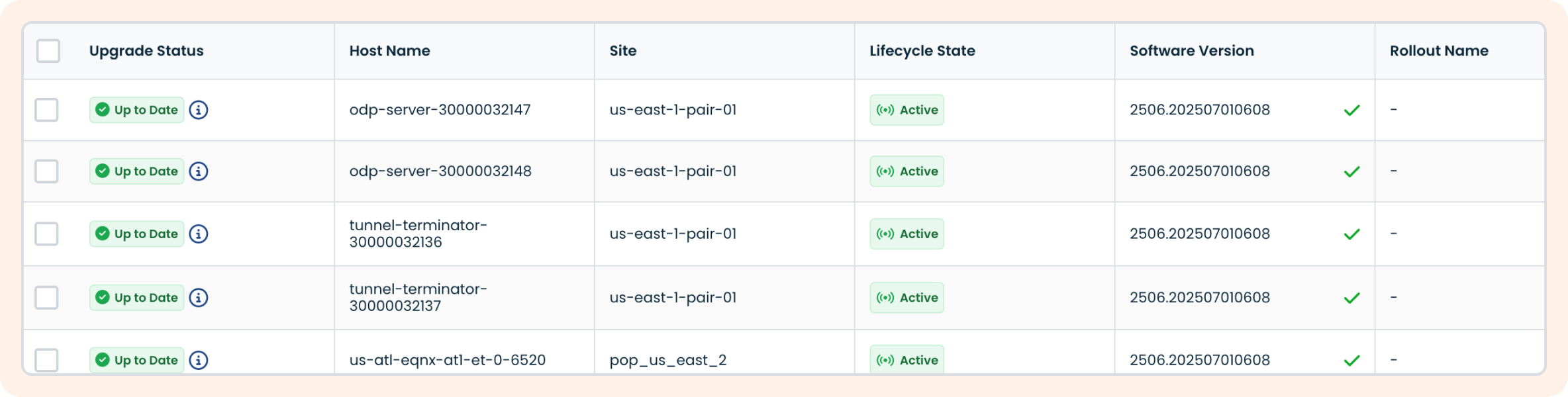Scenarios: customize table view to only see certain columns, bulk deactivation of network edges, filter to only see online edges at a specific datacenter