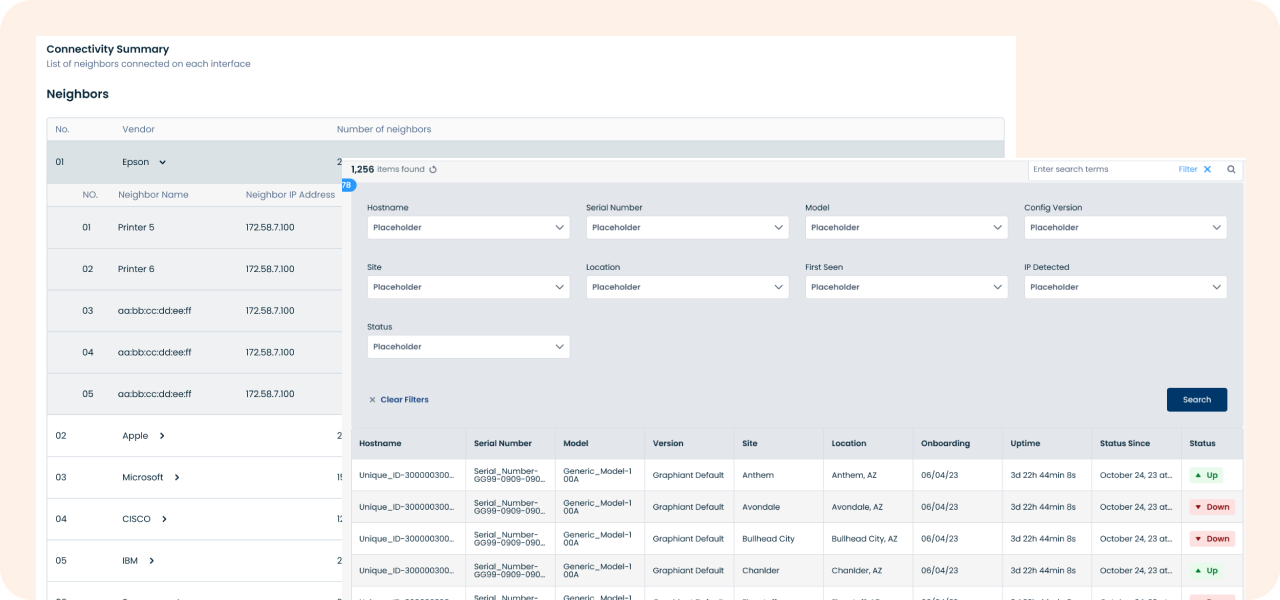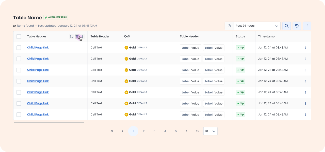 Graphiant’s tables are a central component of the product used to display and manage data across multiple modules like edge device information, logs and live network information. However, usability issues with filtering, sorting, and bulk actions were slowing down workflows and driving up support tickets.